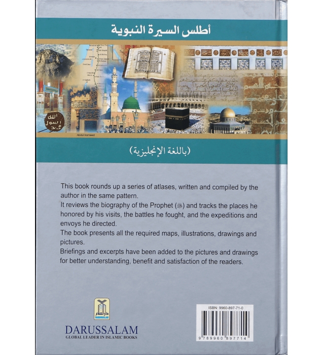 This book rounds up a series of atlases, written and compiled by the author in the same pattern. It reviews the biography of the Prophet (S) and tracks the places he honored by his visits, the battles he fought, and the expeditions and envoys he directed. The book presents all the required maps, illustrations, drawings and pictures.Briefings and excerpts have been added to the pictures and drawings for better understanding, benefit and satisfaction of the readers.After the valuable presentation, Atlas of the Qur’an, as promised, Darussalam is presenting Atlas on the Prophet’s Biography.This Atlas is also a compilation of the distinguished research scholar Dr. Shawqi Abu Khalil. The book is in Arabic language and published by Dar-Al-Fikr, Damascus. Dr. Shawqi completed this Book also after the careful study and research this great work required.In this Atlas, the Seerah has been given in a brief form, and maps, explanatory diagrams and photographs have been added to show the places and directions of various events that took place in the life of the Prophet ¬ (S). The maps and illustrations have been presented in chronological order.Throughout the study of this Atlas, the perception and understanding of the Seerah of the Prophet (S), becomes very easy as if the past events are passing before our eyes in the form of imaginary pictures