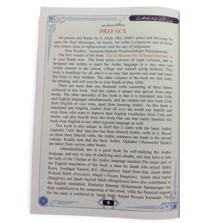 This is the first volume of the book series “Zia ul Meezan fee Ta’leemil Qurán”. It consits of 8 volumes, and is designed and written to teach the Arabic language in a very easy and simple manner to the school, college and maktab going students. This books is beneficial for all, and it is so easy that anyone can read and teach this book to their children. The other volumes of the book are also going to be released soon inshaaAllaah.