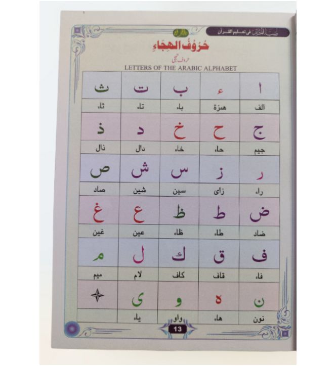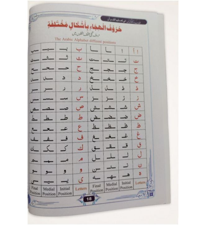 This book is also unique in itself that it starts with the basic Arabic Alphabet “Alif, Baa” and also has three-lettered Arabic verbs in it. Based on these three-lettered verbs, the Arabic sentences are made in the second volume. Kindly note that the basic Arabic Alphabet (Hurooful hijaa’i) are taken from various other books.